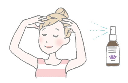 頭からミストを浴びるようにスプレーすると、オーラからリラックスします。