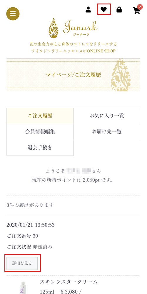 2.ログイン後、「マイページ/お気に入り一覧」ページから登録した商品の確認や購入ができます。